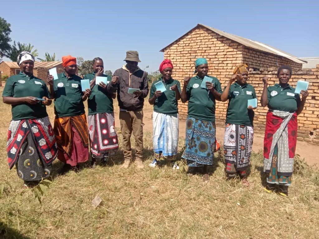 Women group from Hasamba village –songwe region with NADO staff (MR.Lusekelo) at a group photo after received training on own saving culture, at their hands are passbooks which will be used for record keeping.