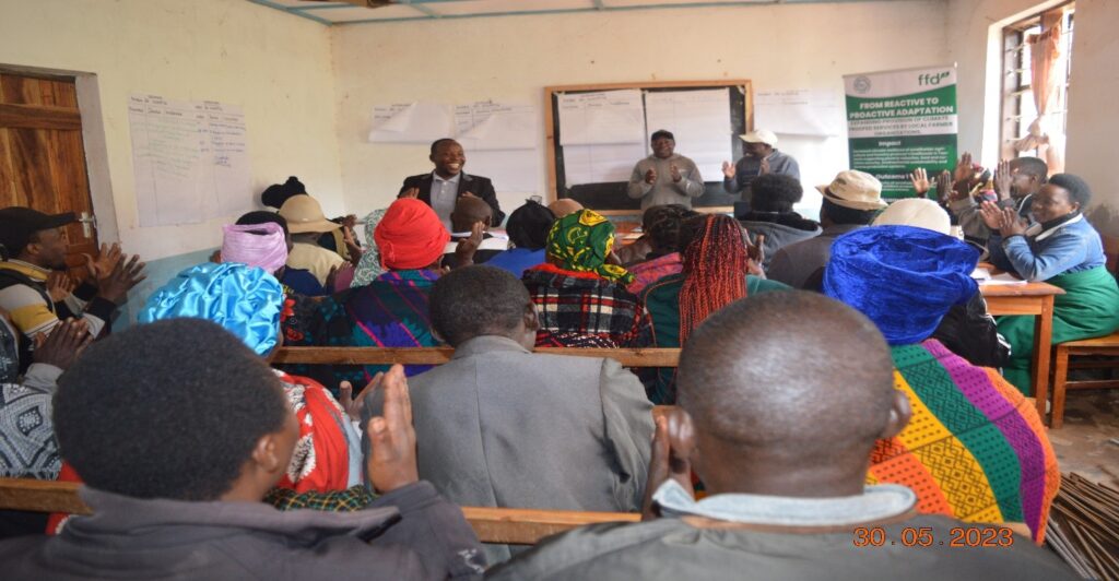 Our agronomist (MR.ERNEST NG’UMBI) and field officers (MR GREYSON MWENGA & LINUS MLOGE) conducting a capacity building to farmers on building resilience to climate change at LUSITU village in Ludewa District-Njombe region