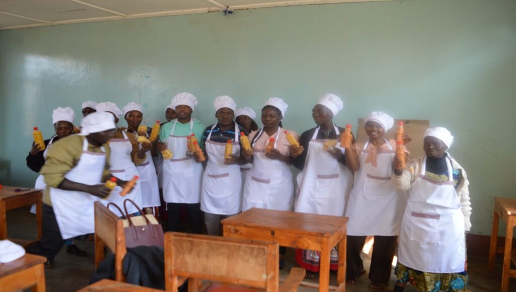 We build healthier communities by training vendors in Good Food Handling Practices (GFHP), raising awareness on nutrition and malnutrition prevention, establishment of nutrition program at schools and religious institutions through home gardens and cooking demonstrations, provision of orange Fleshed sweet potato (OFSP) Vines.