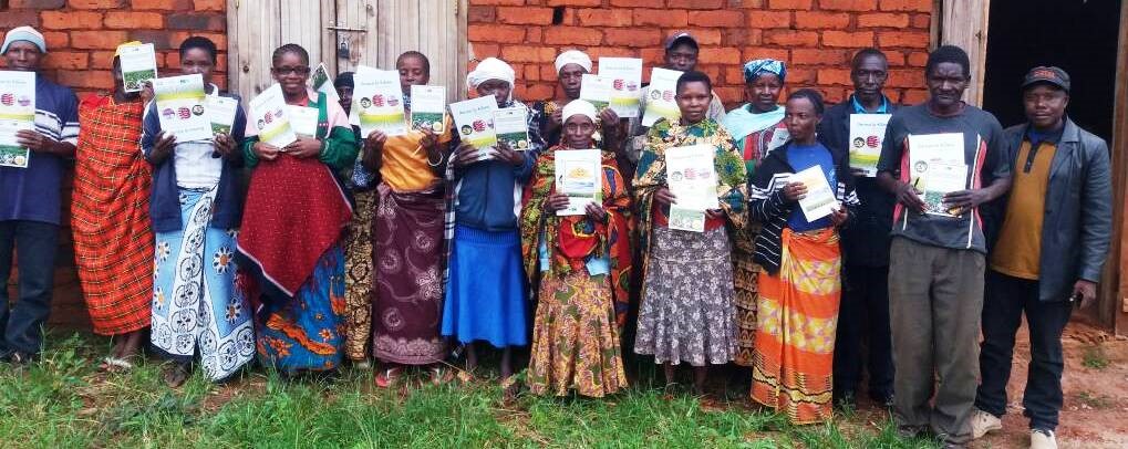 Our Field officer (Mr Greyson Mwenga-right side) with farmers having manuals on Good agricultural practices at Amani village-LUDEWA